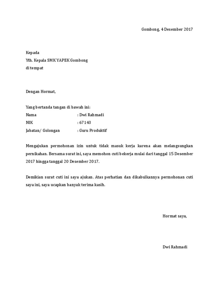 The collection that consisting of chosen picture and the best amongst others. Surat cuti adalah surat yang sengaja dibuat sebagai bentuk permohonan izin atau pemberitahuan ke pihak perusahaan bahwa seorang karyawan . Di bawah ini adalah contoh surat .